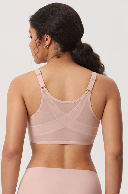 DELIMIRA Women's Front Closure Bras Posture Full Coverage Plus Size Underwire Unlined Back Support Plunge Seamless Bra B-H